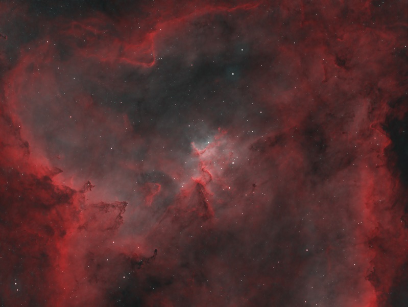 | | | Date | : | 24 et 28/06 (Ha), 29/06 et 30/06 (OIII), 01/07/25 (SII) | | Lieu | : | Montoy-Flanville (57) | | Instrument imageur | : | Skywatcher Equinox 120ED | | Réducteur | : | Skywatcher x0.85 | | f/ | : | 6,375 | | Focale | : | 765mm | | Monture | : | Atlas | | Guidage | : | PHD2/pulse guide | | Instrument de guidage // | : | Takahashi GT-40 (40x240)-ASI 290MM | | Logiciel de capture | : | N.I.N.A. | | Caméra | : | ZWO ASI1600MM Pro (offset 10_gain 139) | | Filtre | : | Astrodon Ha, OIII et SII 5nm | | Accessoires | : | RAF ZWO mini, Pocket Powerbox Advance et FocusCube 2 PegasusAstro, résistances Astrozap | | Durée de chaque poses | : | 5mn | | Nombre de poses | : | 44+51=95 (Ha), 19+44=63 (OIII), 47 (SII) | | Durée totale | : | 7h55 (Ha) + 5h15 (OIII) + 3h55 = 17h05 | | Température caméra | : | -10° | | Darks | : | 61 (120s_-10°_offset 10_gain 139) | | Offsets | : | 21 (2s_-10°_offset 10_gain 139) | | Flats | : | 21 (2s_-10°_offset 10_gain 139) | | Logiciels de traitement | : | Siril, StarNet, Topaz, Photoshop CS3 |
